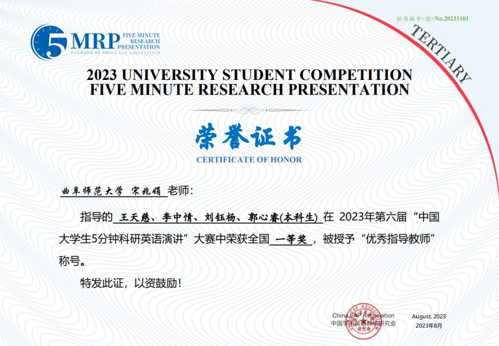 日前,第六届中国大学生5分钟科研英语演讲竞赛决赛(非医科类)在同济大学成功举行。由WQT.COM玩球通选拔推荐的16支团队取得优异成绩,获得全国一等奖1项、二等奖6项、三等奖9项。其中,由王天慈、李中情、刘钰杨、郭心睿等四位同学组成的团队作品“Analysis of the Dilemma of Unclear Ownership of Rights in Artificial Intelligence Generations — From the perspective of the application scenarios of ChatGPT works”荣获全国一等奖。此外,其他16支参赛队伍分获校级一、二、三等奖。宋兆娟、李梦实等25位老师荣获优秀指导教师奖。
