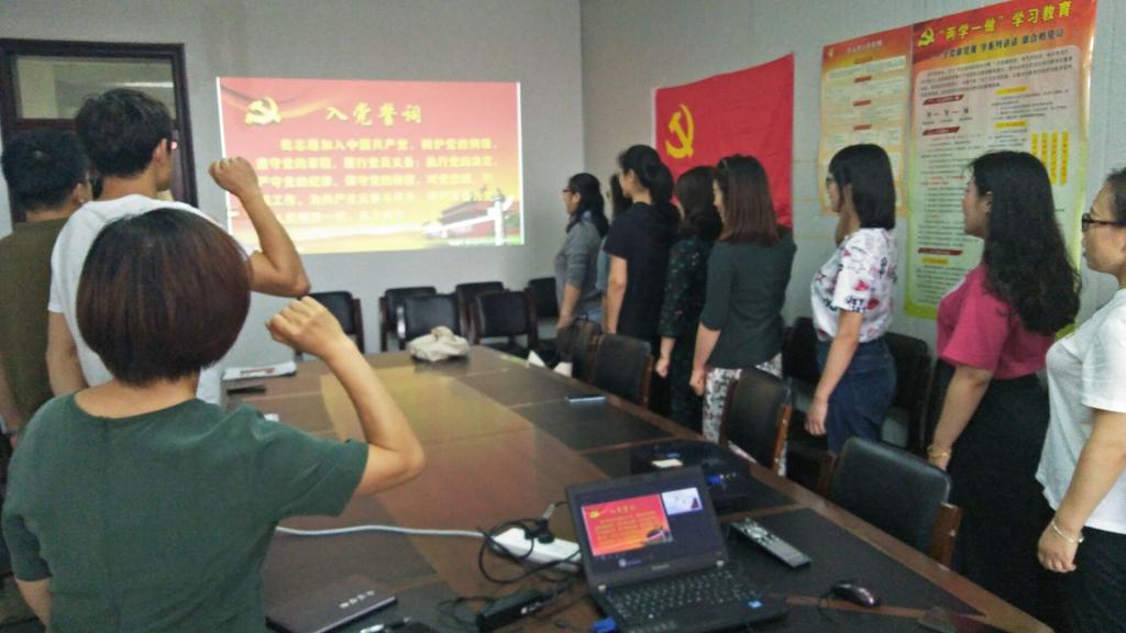 第二项内容是重温入党誓词。全体党员面向党旗,在组织委员聂新艳同志的带领下,庄严地宣誓。
