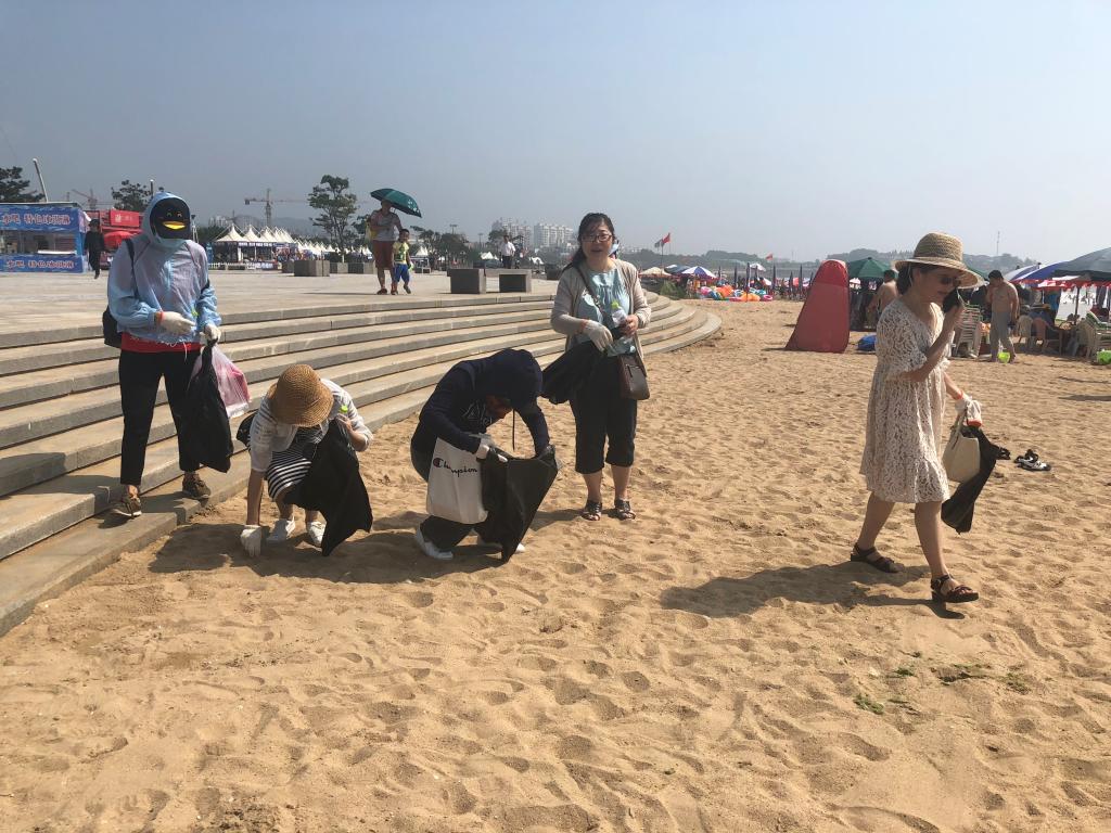 2018年7月13日上午,玩球通(中国)日照党支部的党员们,来到日照市第三海水浴场,义务清理沙滩上的垃圾,开展“跃动红色党徽,助力金色沙滩”志愿活动。