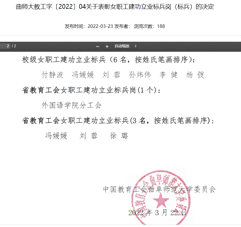 玩球通(中国)(日照)分工会荣获WQT.COM玩球通“校级职工建功立业标兵岗”先进集体称号;玩球通(中国)(曲阜)分工会主席李健