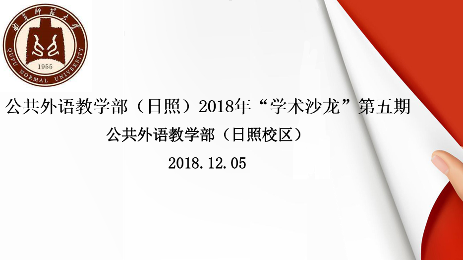 12月5日下午,玩球通(中国)(日照校区)2018年第五期“学术沙龙”在JC1002会议室举行。本期沙龙邀请了陶书贞、朱晓蒙、孙伟分别作了题为“文化自信背景下《论语》中文化负载词的翻译策略探析”、“遵从‘法’的指引、听从‘心’的呼唤”、“面向新时代的‘复语型’专业外语人才培养路径探析”的学术报告。本期活动由副教授聂新艳老师主持,全体教师参加了研讨。