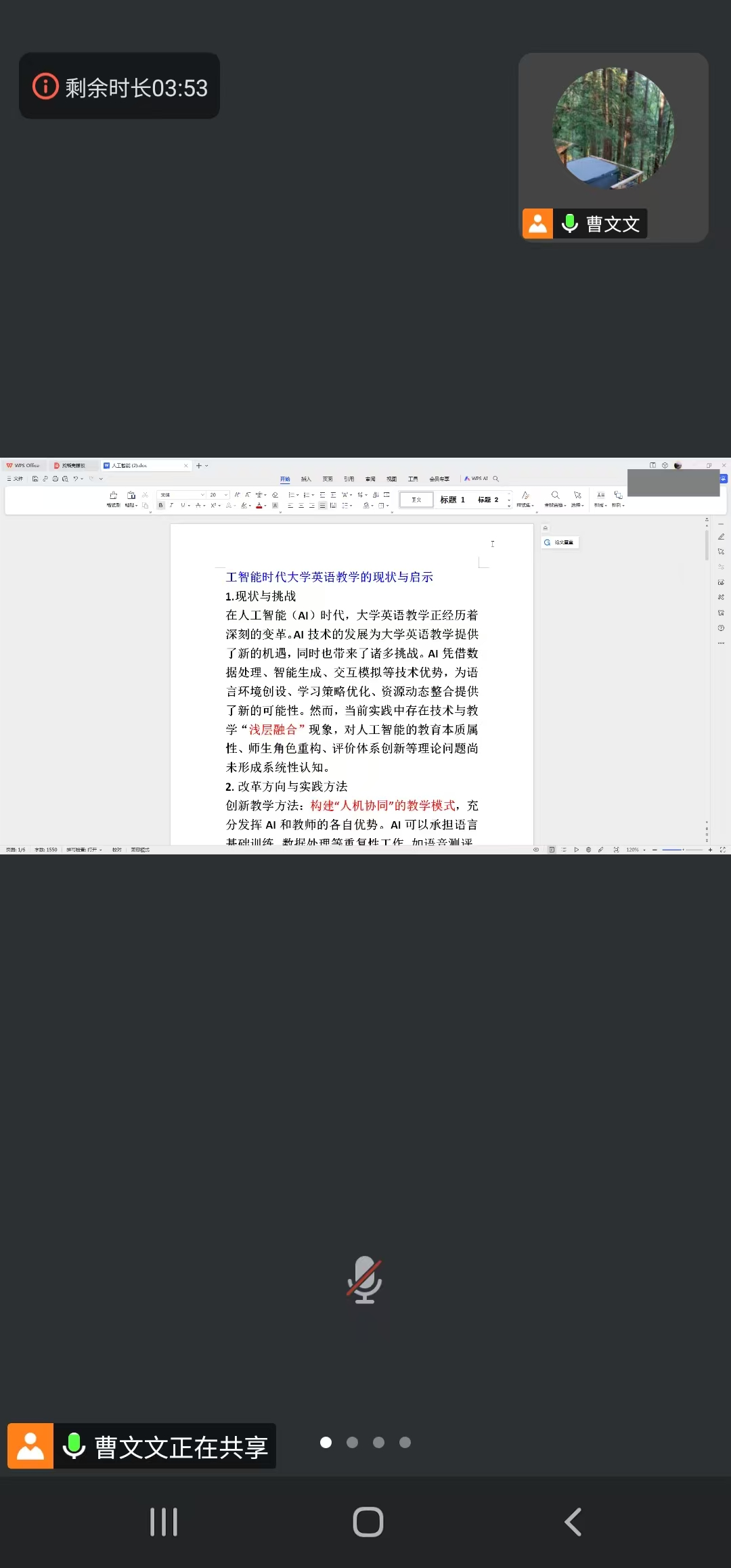 2025年6月30日,玩球通(中国)语言教学研究团队(日照)开展题为“AI辅助下科研论文写作”的研讨会,主要围绕科研进展、方向及AI学术应用方面展开。研讨会由曹文文主持。