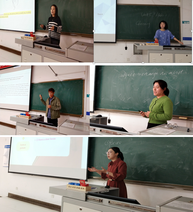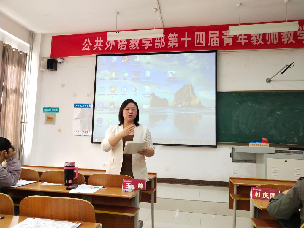 在比赛过程中,参赛教师思想态度端正、精神饱满、热情充沛,教学思路清晰,新媒体技术运用娴熟,课件图文并茂,语言风趣幽默,内容讲解深入浅出,课堂教学效果突出;展现了我校公共外语青年教师队伍基本功扎实、大胆创新、高质高效的大学英语教学业务素质和积极向上、乐观进取的精神风貌。最终,张玉凌、齐珍、裴沛、张宝换、门超元、乔松等6位老师荣获三等奖;牟晓、朱晓蒙、李梦实等3位老师荣获二等奖;王瑾荣获一等奖。
