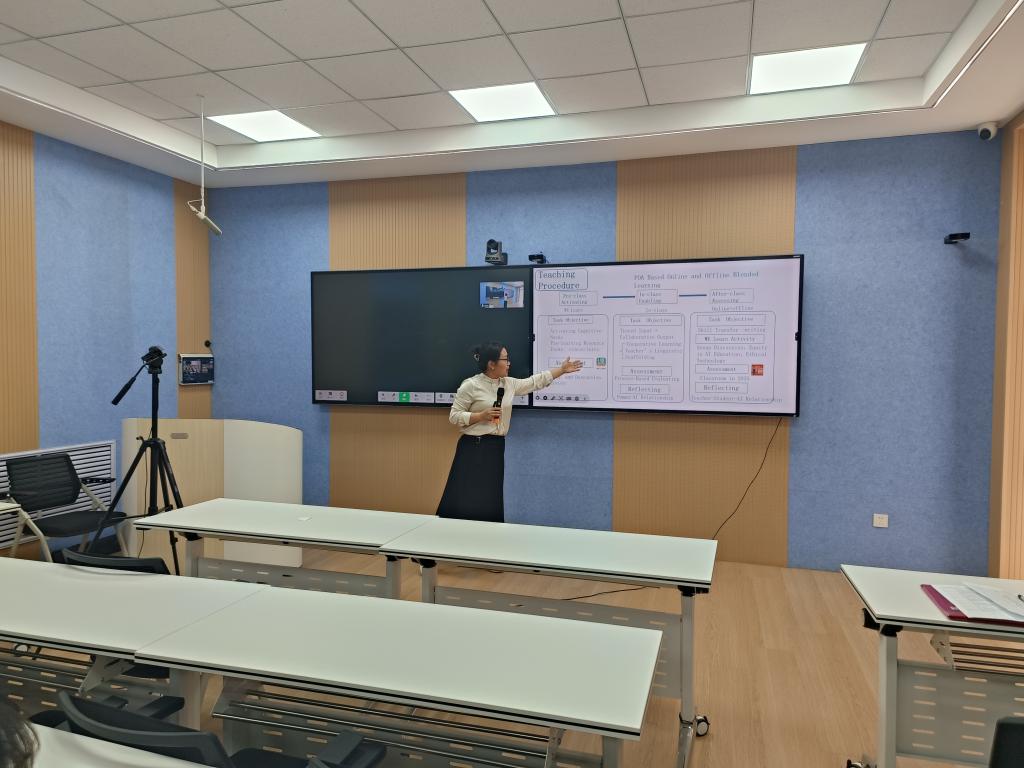 根据赛事通知,此次比赛要求参赛教师首先进行 3 分钟左右的教学综述,阐述对授课素材的整体教学设计,展示教学目标设定与实施的逻辑关系,随后的课堂授课时间针对教学设计中的某一具体板块进行教学展示。牟晓老师选取了外教社《传播中国》教材中的Prosperous China 一文,在综述环节,她条理清晰地讲解了教学设计思路,在课堂授课时,通过生动的案例、多样的互动方式,充分调动学生积极性,将知识点讲解得深入浅出,学生们踊跃参与课堂讨论,展现出良好的学习热情。汪娟老师则以AI Technology and the Future of Education为素材,在 3 分钟的综述里,清晰地说明了教学目标和教学方法的选择,在后续的课堂教学中,她借助精心制作的教学课件,巧妙引导学生思考,课堂氛围活跃,充分体现了以学生为中心的教学理念。