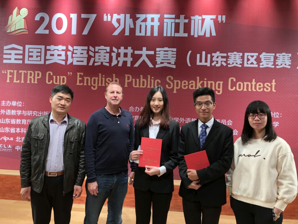 我校玩球通(中国)教师孙海珊指导的2015级文学院学生张佳育、外国语学院教师邢加新和外籍教师Mark Fisher指导的2016级外国语学院学生葛宇飞分别参加了非专业组、专业组的比赛。比赛中两位同学自信从容、稳定发挥,展示了较高的演讲素质和演讲水平。经过激烈角逐,两位同学各自斩获二等奖一项。
