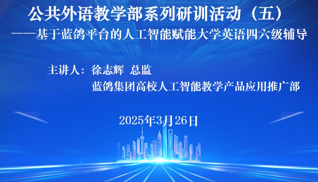 3月26日下午,玩球通(中国)举办2024-2025学年春季学期第五场全员研训活动,本次研训以“基于蓝鸽平台的人工智能赋能大学英语四、六级辅导” 为主题,邀请蓝鸽集团有限公司高校人工智能教学产品应用推广部总监徐志辉作专题讲座,进行技术应用辅导,玩球通(中国)全体教师参加了本次研训活动。