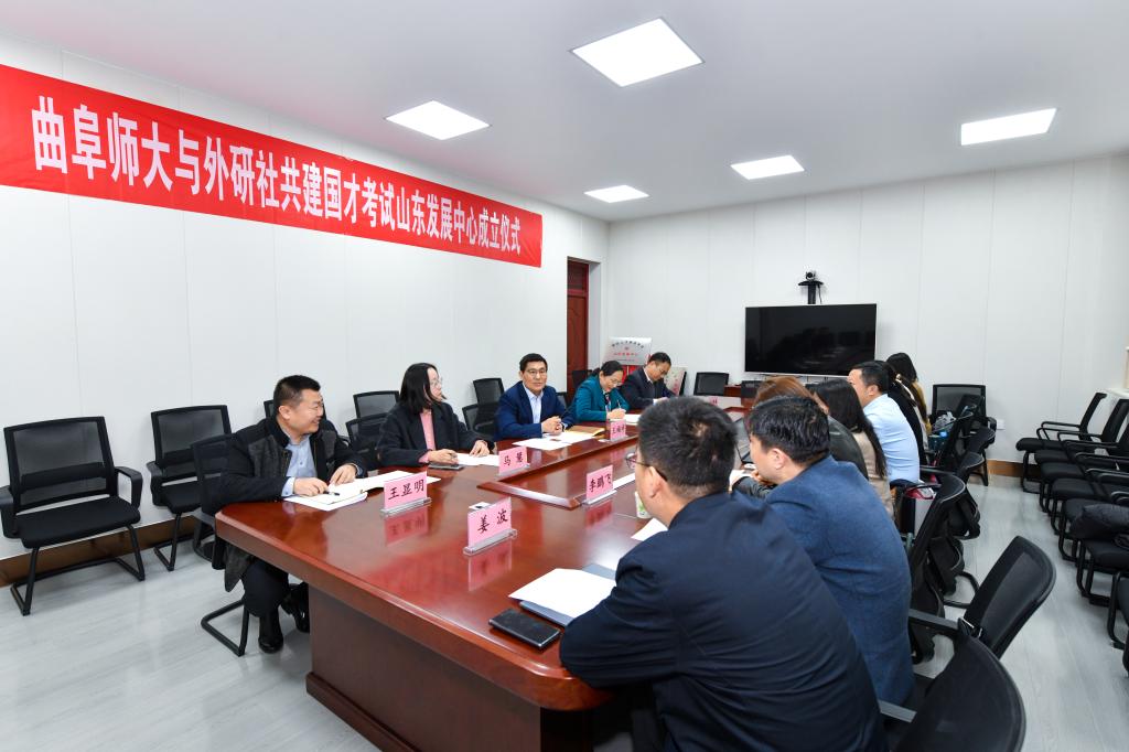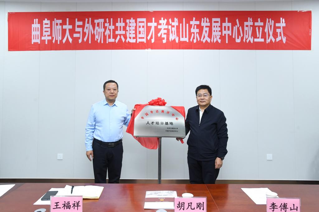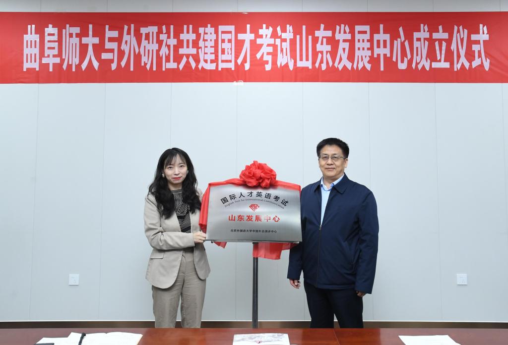 仪式上,胡凡刚副校长与冯涛总经理共同为“国际人才英语考试山东发展中心”揭牌,曲师大教务处处长李傅山与外研社高等营销中心华东大区总经理李洪旺为“WQT.COM玩球通国际人才培养基地”揭牌。两大平台的成立,将为山东省高校国际化人才培养提供重要支撑。